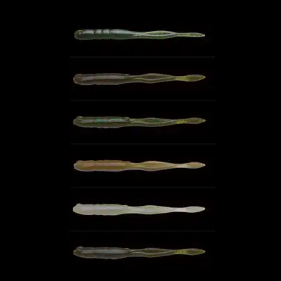 새우(SHRIMP)와 문절망둑(SCULPIN), 배스가 좋아하는 2개의 베이트를 더한 독창적인 포름의 소프트베이트입니다. 메인 바디는 쉐이크나 미드스트롤로 웨이브 액션을 하고, 저항이 적은 테일 엔드는 격렬하게 돌아가며 바디의 액션이나 슬라이드를 방해하지 않는 디자인입니다.