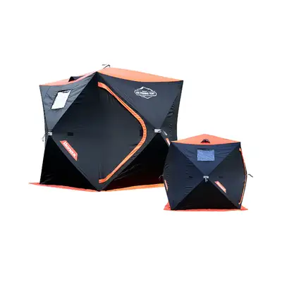 텐트와 폴대가 일체화된 빙상 낚시 텐트로 설치 및 해체가 매우 용이 측면부 우레탄 투명창, 메쉬 창으로 구성 수납에 용이한 내부 수납 포켓 적용 환기 및 결로 방지를 위한 상부 통풍구 적용 보관 및 이동에 용이한 전용 가방