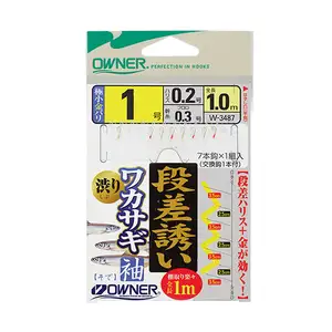OWNER WAKASAGI 段差 SLEEVE. 단차 해리스와 변칙 간격이 어필을 하는 빙어 채비. 본줄은 후로로 고감도 라인, 로우용 교환 훅 부착, 전장 1.0m.