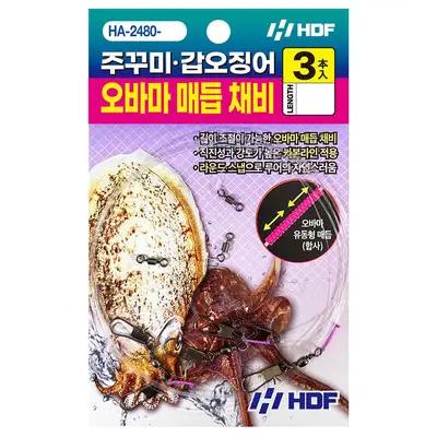 주꾸미·갑오징어 전용 오바마 매듭 채비. 수심이나 상황에 따라 지선 길이 조절 가능. 직진성과 고강도 카본라인 적용. 라운드 스냅으로 자연스러운 루어 액션 연출.