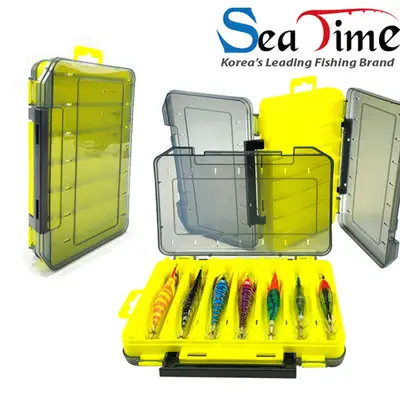 양면 개폐형 에기 루어 태클박스로 양면 개폐로 앞뒤 모두 수납이 가능해 더 효율적인 공간 활용이 가능합니다. 1면 7칸, 양면 총 14칸 수납이 가능하며 투명 뚜껑으로 언제든지 색상과 종류를 쉽게 선택할 수 있습니다. 곳곳에 물빠짐 구멍이 있어 편리하게 세척이 가능합니다.