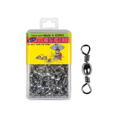 해동이맨도래 100개입 1호 사이즈. 회전 기능이 있는 몰림도래로 엉킴 방지 및 자연스러운 미끼 움직임을 위한 제품.