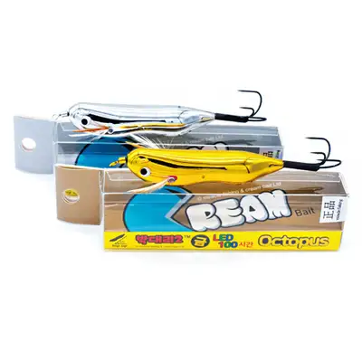 문어 대상의 전기도금 에기로, 물 접촉 시 자동 발광하는 적색 LED와 방수 설계가 적용된 박대리2 시리즈.
