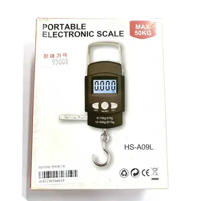 PORTABLE ELECTRONIC SCALE MAX 50KG 0-10kg d=5g 10-50kg d=10g 100 cm ruler HS-A09L AAA battery-2PCS TARE ON/OFF UNIT