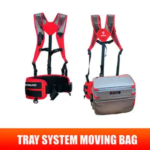 TRAY SYSTEM MOVING BAG은 장시간 낚시에서 무게감으로 인한 피로도를 줄이기 위해 허리벨트와 어깨끈을 이용해 무게를 분산하고, 허리가방의 채비교환 불편함을 무빙벨트 시스템을 통해 극복하여 손쉬운 채비교환이 가능한 가방입니다. MC-245DB와 MC-176MWE 사이즈의 태클박스를 수납할 수 있으며, 가방과 벨트의 조립식 구조로 용도 변경이 가능합니다.