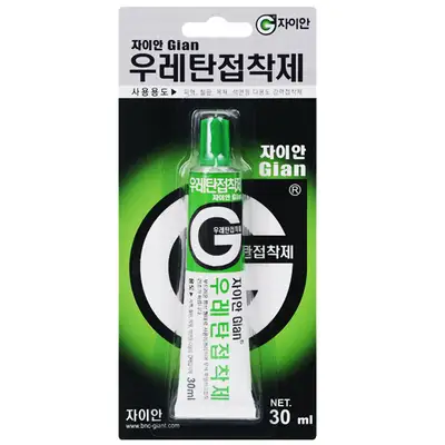 다용도 우레탄 접착제 30ml 용량. 피혁, 철판, 목재, 금속판, 암면 등 다양한 재료에 적용 가능한 강력 접착제입니다.