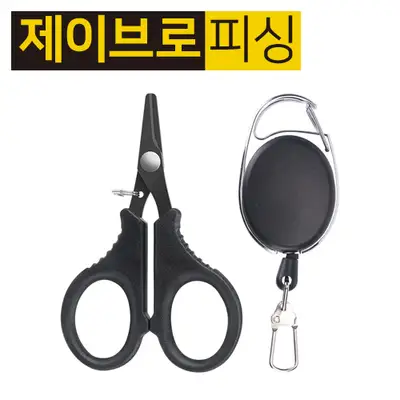 피싱라인가위 with 핀온릴. 최대 60cm까지 늘어나는 핀온릴이 포함된 라인커터가위입니다. 톱날 가공으로 모노라인부터 카본, 합사까지 깔끔한 컷팅이 가능합니다.
