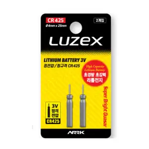 루젝스 CR425 리튬 배터리. 3V 정격전압, 용량 30mAh. 약 30시간 동안 전압이 안정적으로 일정하게 유지됩니다. 기존 425 전지 대비 밝기 20% UP. 바다 전자구멍찌, 전자 막대찌, 중층 전자찌, 소형 집어등, 캐미 등 다양한 소형 전자제품에 호환 가능.