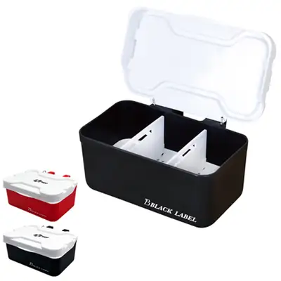 케미 하드 미끼통. 4.5mm 케미 또는 4mm 케미를 케미꽂이에 장착하여 칸막이에 고정하면 야간에 미끼 식별이 용이. 2칸, 3칸으로 자유롭게 나눌 수 있는 중간 칸막이. 기능성·보관성·취급성이 편리한 하드 미끼통. 내부 물빠짐용 받침대 구성 (탈·부착형). 안전하고 견고하게 거치할 수 있는 연결부 적용. 한손으로 가볍게 개폐 가능한 뚜껑.
