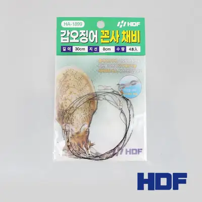 갑오징어 끈사 채비. 블랙 라인 적용 및 지선을 꼬아서 가지채비 적용으로 채비엉킴을 최소화. 라운드 스냅을 적용하여 루어의 자연스러움을 연출.