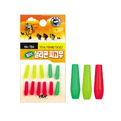 HA-784 컬러 실리콘 찌고무 고시인성의 컬러풀한 3색 찌고무 혼합 구성. 실리콘 재질에 발광 안료를 삽입한 발광형. 길이14mm