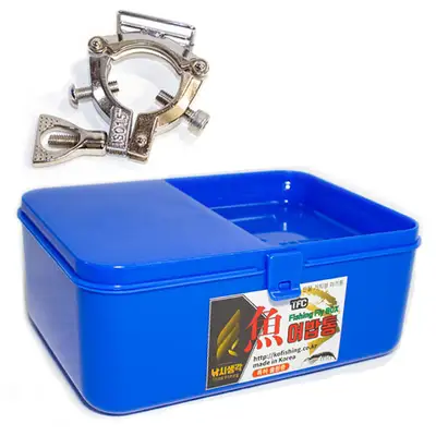 TFC 어낱통(생미끼통 다용도 태클박스), 규격 15.5 x 19.5 x 8.2 (H) cm, 깊이 2.2 cm, 용도 선상/민물, 구성 본체 1개, 클램프 1개, 클램프는 파이프 최대 45mm까지 고정 가능, 클램프를 수평/수직으로 삽입해 거치 가능.