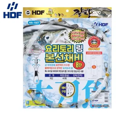 볼베어링이 장착되어 원줄과 지선채비의 꼬임을 방지해주는 갈치낚시 기둥줄 채비. 규격(단) 8 / 라인(경심·호) 40 / 단차(간격·m) 2.