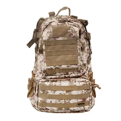 각종 패치부착이 가능한 전면부, 물통 및 소품 수납이 가능한 측면부, 튼튼한 버클 채용, 땀 배출이 용이한 메쉬소재 적용, 제품 상단 측면부 포켓 주머니 등의 특징을 가진 보조가방입니다.