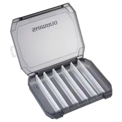 좌우 어느쪽으로도 열 수 있는 와이드 타입의 루어 케이스. 6매의 칸막이판이 부속되어 있으며, 다양한 종류의 루어 수납이 가능합니다. 칸막이판을 사용하지 않을 때는, 보다 대형의 루어를 수납할 수 있습니다.