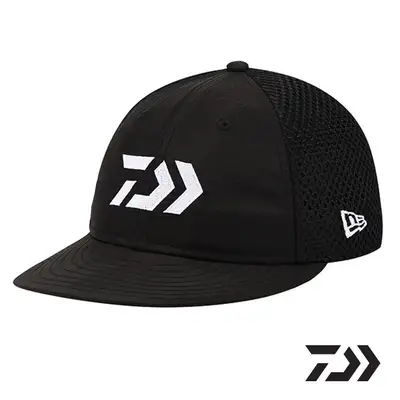 다이와 X 뉴에라 콜라보 캡. 뉴에라 9FIFTY 스타일에 DAIWA 로고로 재탄생. 후면 스트랩으로 사이즈 조절 가능하며 나일론 소재와 메시 원단으로 가볍고 통풍이 좋음. 턱꾼이 있어 바람 강한 곳에서도 모자가 날아가지 않음.