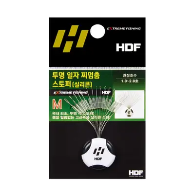 투명 일자 찌멈춤 스토퍼. 챔질 밀림 없는 고신축성 실리콘 소재. 특수 기술력의 초정밀 철심 입 공정으로 강한 챔질 시에도 밀림 현상을 최소화한 타입. 바다, 민물, 중층·내림낚시 겸용.
