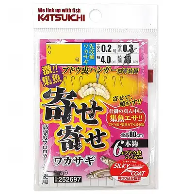 요세요세 와카사기 6본채비. 빙어낚시용 6본 채비로, 0.2호 줄기줄과 0.3호 가지줄, 4.0cm 간격의 가지줄 장착. 브도우 벌레로 집어효과를 극대화한 집어세팅.