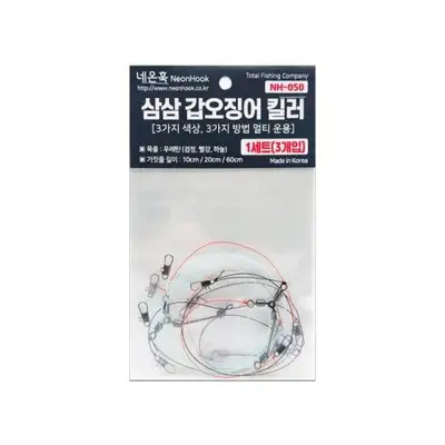 갑오징어 채비 3개입 목줄: 우레탄(검정, 빨강, 하늘) 가지길이: 10cm / 20cm / 60cm 인터락스냅 10cm 20cm 60cm 3-Way System [멀티 운용 채비]