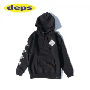 21 DEPS L.I.O HOODIE. 소재 : 면 52% / 폴리에스터 48% 기모 (겉실 : 면 100%). 빅 사이즈 핏입니다. 소재는 발수 가공처리가 되어 있으나, 봉제는 방수 사양으로 되어있지 않습니다.