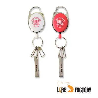 카라비너 타입의 핀온릴 라인커터. 60cm 와이어길이로 옷에 장착한 상태에서 도구 사용이 편리하며, 3개의 홀더에 라인커터, 합사가위 등 각종 낚시도구 장착 가능.