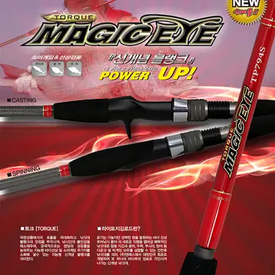 매직아이 토크 TP794S (GRIP 396mm) 캐스팅을 목적으로 하는 파핑 낚싯대를 기본으로 설계되었으며, 지깅낚시를 병행할 수 있다. 버티컬 지깅낚시에는 최소 30~150g의 메탈지그와 캐스팅 낚시에는 20~100g의 펜슬과 포퍼를 운용할 수 있는 파워레벨 4의 빅게임 범주에 속하는 스피닝 전용 낚싯대임. PE 라인은 2~4호, 쇼크리더는 MAX 80lb(22호) 사용을 권장함.