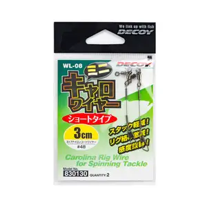 DECOY 미니캐로 와이어(WL-08)는 스피닝용 카롤리나 리그 미니 캐로 와이어로, 나일론 코팅 와이어를 사용해 얇은 라인에서도 라인 손상과 얽힘을 줄이고 흐름이 있는 수심대에서 가벼운 싱커 운용에 유리합니다. 리더는 플로로 카본을 사용하며 싱커는 1.8g~9g가 권장됩니다.