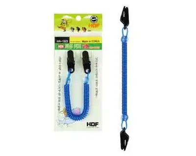 낚시용품 분실방지용 악세사리. 클립+클립 연결 조합품으로 낚시모자 등에 연결 가능하며 우레탄 스프링 줄 채용. 특수 합사가 내장된 고강도 우레탄 스프링줄 사용.