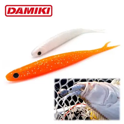 미세한 떨림을 연출하는 스플릿 테일이 대상어의 호기심과 식욕을 자극하며, 유연하면서도 탄력있는 소재를 사용하여 베이트피시와 흡사한 물성 표현. 다미끼의 특수 자외선 반사 도료(DMK-011)를 사용하여 월등한 시인성 확보. 훅 슬릿을 적용하여 채비가 쉬우며, 털림 없는 정확한 훅셋이 가능하다.