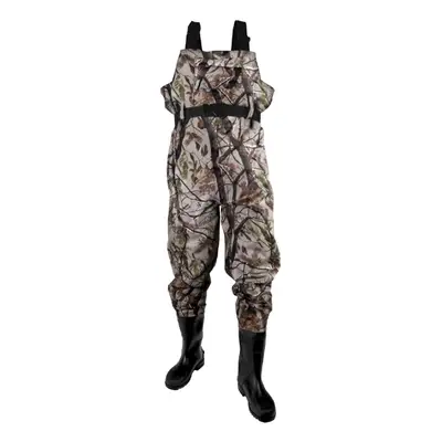 오염에 강하며 완벽한 방수성의 가슴장화. 오염에 강한 특수코팅 카모원단 채용. 완벽한 방수를 실현하는 무봉제 고주파 부착방식. 견고한 봉제선과 심실링 처리로 완벽한 방수 구현. 안정적인 착용을 위한 허리조절 벨트. 상부어깨조절벨트 적용. 가슴부 벨크로 주머니 채용. 빠르고 손쉬운 탈의를 위한 킥오프 기능. 미끄럼 방지를 위한 러버 바닥부. 강화된 토캡 적용으로 높은 안전성.