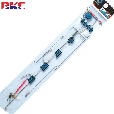 특수 스테인리스 재질 우럭전용채비. BKC 한국본사에서 직접 생산한 고급 낚시 바늘 및 도래를 사용하여 제품의 신뢰도 높임. 고객의 취향에 최대한 맞추기 위해 대상어종별로 다양한 채비를 구비하여 소비자의 만족도를 높임. 99%이상 한국, 일본, 미국산 원산재를 사용하여 제품의 질을 극대화함. BK-401 우럭덤핑채비카드(대). 특수스텐재질로 제작됨, 대물제압에도 스텐재질이 원상 복귀. 각부분마다 회전이 기능하여 줄꼬임 방지.