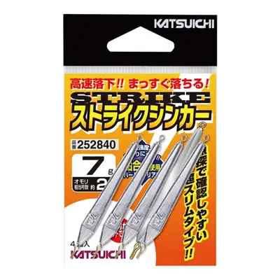 7g 스트라이크 싱커. 날씬한 모양으로 급직 낙하하여 수심이 있는 보트 낚시에 적합. 호류 영향 적고 트러블 회피.