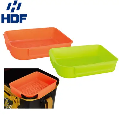EVA 밀밥통의 모서리에 장착 사용으로, 공간 활용도를 높인 기능성 미끼통 크릴이 녹으면서 발생하는 수분을 배출시킬 수 있는 메쉬(Mesh) 구조형 2군데의 견고한 고정 클립으로 안정적인 장착이 가능한 타입