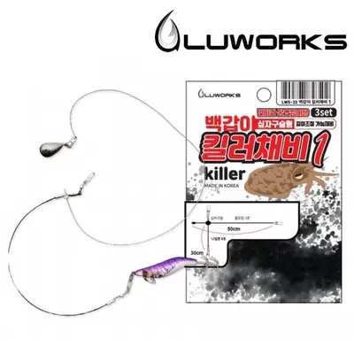 갑오징어 전용 회전도래형 킬러채비로, 유동식 십자구슬을 채택하여 줄꼬임 방지와 목줄 길이 조절이 가능하며, 초경량 루어스냅과 튼튼한 회전도래로 수중에서 자연스러운 액션을 표현할 수 있습니다.