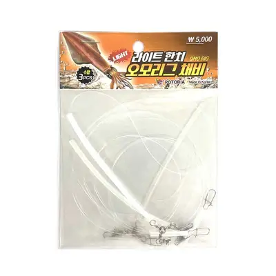 오모리그 전용 채비. 총 길이 1m, 꼬임 방지를 위한 튜브 적용, 하단에 오모리그 전용 T형 도래 채택(오모리그 T형 도래 별도 구매 가능).