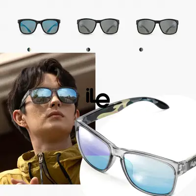 ILE ECO SYSTEM 기반의 친환경 편광선글라스. 폐기 후 자연분해 가능한 BIOPLASTIC G850 소재 프레임 사용. 식물성 원유인 피마자유가 45% 함유. FSC 인증 포장재 사용. PC(폴리카보네이트) 편광렌즈(투과율 15%) 적용. 미러렌즈로 빛을 반사하여 눈부심 최소화.