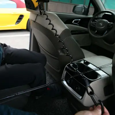 코일 로드 차량용거치대 35cm-120cm, 비너의 큰 구경으로 어떤 헤드레스트든 장착가능, 엄청난 신축성으로 무려 120cm까지 늘어납니다. 또한 코일 두께 약 2.5cm로 매우 두꺼워 어떠한 충격에도 로드를 강력하게 잡아줍니다.