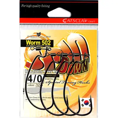 스핀 다운 웜 훅 502은 드롭샷링을 염두에 두고 특별히 설계되었습니다. 독특한 스위블 아이가 웜 및 무게추의 회전을 허용하여 라인의 꼬임을 완벽하게 방지합니다. 또한 빠르고 간단하게 라인의 길이와 중량 교체가 가능합니다.