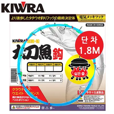 키우라 갈치기둥줄은 프로 갈치 조사님들의 불편했던 상황을 개선,조치하여 조사님들이 사용하시는데 불편함을 좀더 줄이고자 노력하였습니다. 또한 100% 한국에서 제작하여 더욱더 믿으실수 있습니다. 국내산 8호 더블맨도래 사용으로 목줄 꼬임 방지. 국내산 크레인 인터스넷 도래로 회전력과 강도가 탁월함. 메탈구슬을 사용함으로서 채비회수시 채비의 안정화. 40호 최고급 원줄로서 직진성 및 줄꼬임이 없음.
