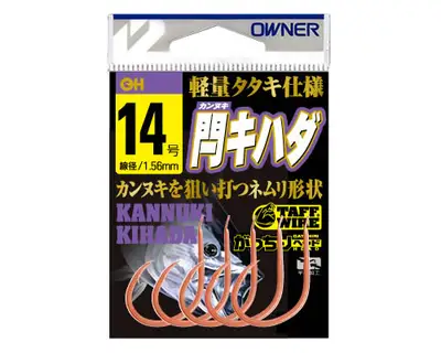 가늘고 긴 형상의 타타키 사양 카나다 훅. 선단 굵기를 얇게 하여 저항을 줄이고 걸림성을 높임. 카나다 낚시에 최적화된 디자인.