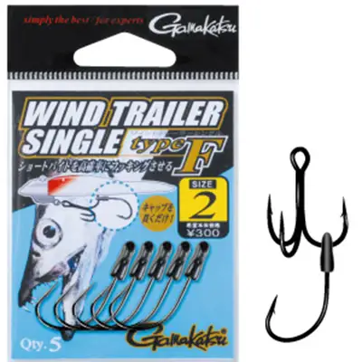 가마가츠의 원드트레일러 싱글 타입 F 훅. 민물 루어 낚시에서 스피너베이트나 채터베이트 등의 트레일러 훅 또는 어시스트 훅으로 사용하기에 최적화된 제품입니다.