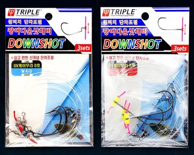 원터치 단차조절 다운샷채비. 3세트 구성. UV케이무라 6호 바늘 사용. 창의적 단축조합 설계.