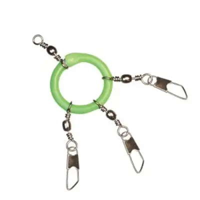 야광 실리콘 재질의 주꾸미 채비를. 야광 주꾸링 20은 주꾸미 집어롭을 최대로 끌어올리기 위해 개발된 것으로 필드 전문가가 직접 고안한 채비방법을 채택하여 만들어진 주꾸미 채비를입니다. 본 링은 야간에도 어떨 가능하도록 야광 실리콘 재질로 입혀져 있으며 라인을 고정시키는 스위블 하나와 예기나 싱커 등을 달 수 있도록 스위블+스냅도 3개나 부착되어 있어 선택적인 베이트 장착을 3종까지 구비할 수 있습니다. 원형 링을 따라 빠빠하게 끼워진 야광실리콘과 단단한 고정글루작업이 각 스냅에 베이트를 달았을때도 흐트러지지 않도록 스위블 상부아이를 꽉 잡아주고 있어 채비본연의 모양을 낚시 중에도 정갈히 유지하며 각각의 베이트의 특성을 잘 실려내는데 조력자 역할도 합니다.