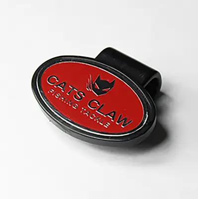 레드 색상의 모자용 마그네틱 홀더. 모자 챙에 부착하여 낚시 용품을 자석으로 고정할 수 있습니다.