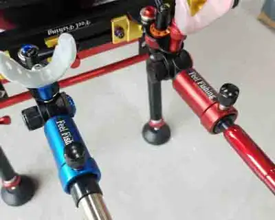 심플 하면서도 특색 있는 컬러의 조합. 상/하,좌/우 각도 조절이 편리. 빠른 챔질 1초가 바쁜 경기낚시 편대낚시에 최적화된 브레이크 헤드. 형광 실리콘 고무 (미끄럼방지 고무). 기존 받침를 보단 포지션이 낮아 편안한 챔질. 다용도 자석(채비 또는 바늘배기 부착이 편리함). 내림/올림 받침대 사용. 18 / 21 구경 까지 사용 가능.