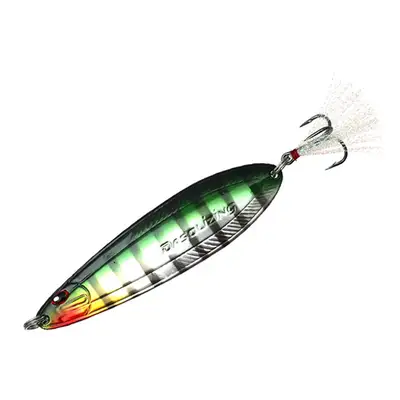 피라미 색상을 모티브로 한 패턴 수중에서의 움직임을 통해서 스푼의 색상은 베이트 피쉬를 연상시킵니다. 오로라 무늬의 홀로그램을 도포하였습니다.