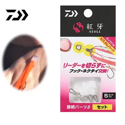 간단, 신속! 리더를 자르지 않고 훅, 넥타이를 교환할 수 있는 코우가의 새로운 셋업 파츠 ‘β 시스템’. 독자적인 형상의 금속 링에 넥타이를 끼우고 캡으로 고정하는 간단한 시스템.