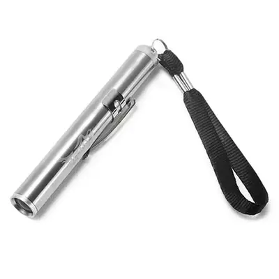 POWER LED 칩을 사용한 초경량 펜형 LED 미니 플래시라이트. AAA 배터리 1개를 사용하며 클립형 홀더와 손목스트랩이 포함됩니다.
