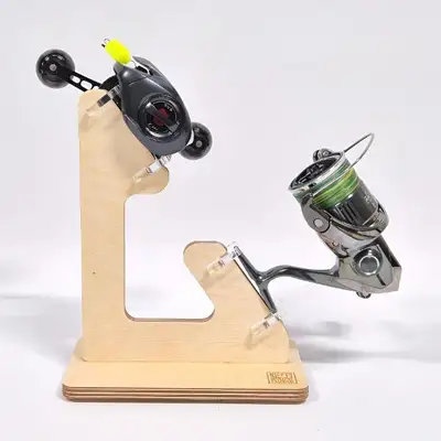 2가지 릴을 한번에! 미니멀한 스탠드형 릴 거치대. 기존 베이트릴과 스피닝릴 구분 없이 동시거치 가능. 상단/하단 고정 핀 조절로 소형부터 대형 릴까지 범용 사용 가능.