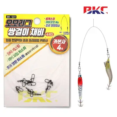 한치오모리그에 장타캐스팅 가능한 채비. 줄꼬임을 최소화한 채비로 프리미엄 카본사 4호 사용. 조류 영향을 최소화시켜 줄꼬임 해소. 롤링 듀어락 스냅 사용으로 부드럽게 회전하여 조류의 영향을 최소화.